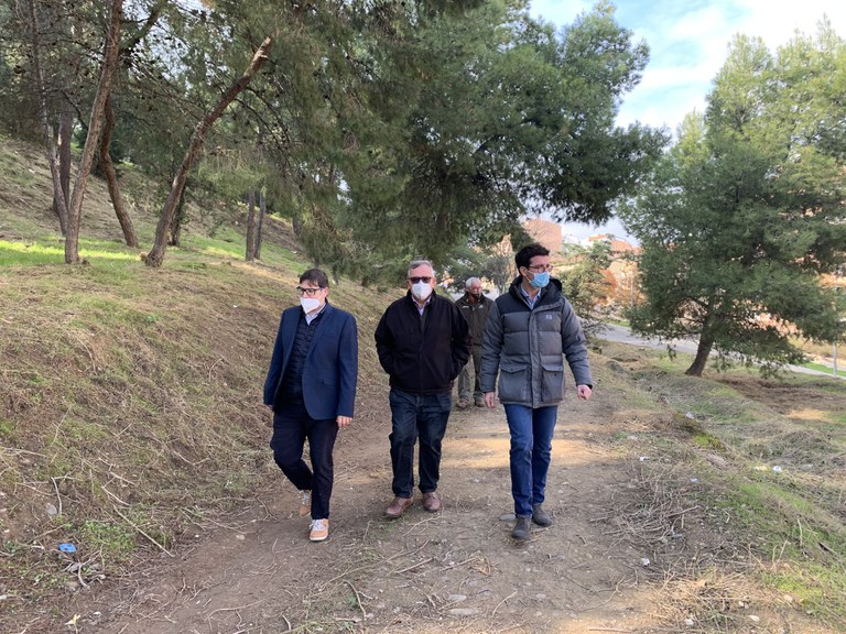 El primer tinent d'alcalde i regidor d'Urbanisme, Toni Postius, ha visitat aquest matí els treballs de desbrossament, que han posat al descobert l'antiga escalinata, i ha conversat amb membres de l'Associació Cultural Castell de Gardeny i de l'Associació de Veïns sobre la recuperació d'aquest entorn