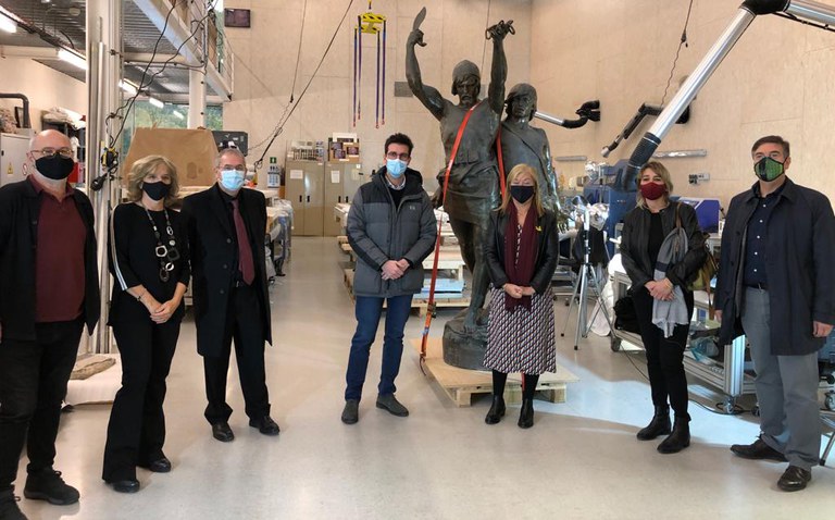 El conjunt escultòric d’Indíbil i Mandoni arriba al Centre de Restauració de Béns Mobles de Catalunya