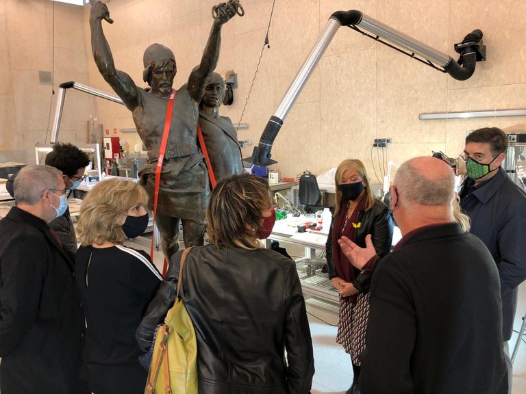 El conjunt escultòric d’Indíbil i Mandoni ja es troba al Centre de Restauració de Béns Mobles de Catalunya de Valldoreix, on l’ha rebut avui la consellera de Cultura, Àngels Ponsa, la directora general de Patrimoni, Elsa Ibar, el director dels serveis territorials de Cultura a Lleida, Miquel Àngel Cullerès, que han estat acompanyats pel primer tinent d’alcalde i regidor d’Urbanisme, Toni Postius, en representació de l’Ajuntament de Lleida.