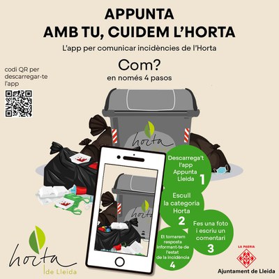 Appunta, l’aplicació per a mòbils de l’Ajuntament de Lleida, que permet als ciutadans i ciutadanes reportar qualsevol incidència a la via pública, ja disposa d’un apartat específic per a notificar les eventualitats que es produeixin a l’Horta de Lleida.