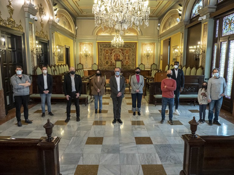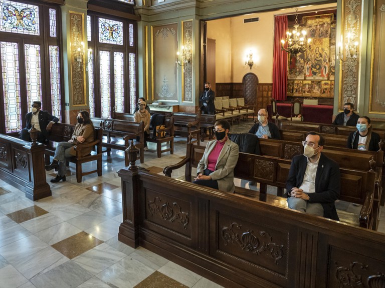 L’alcalde de Lleida, Miquel Pueyo, ha presidit la recepció al Saló de Sessions de la Paeria, a la qual han assistit el regidor de Ciutat i Cultura, Jaume Rutllant, i els paers Jackson Quiñónez, M. Ángeles Ribes, Elena Ferre i Xavier Palau.