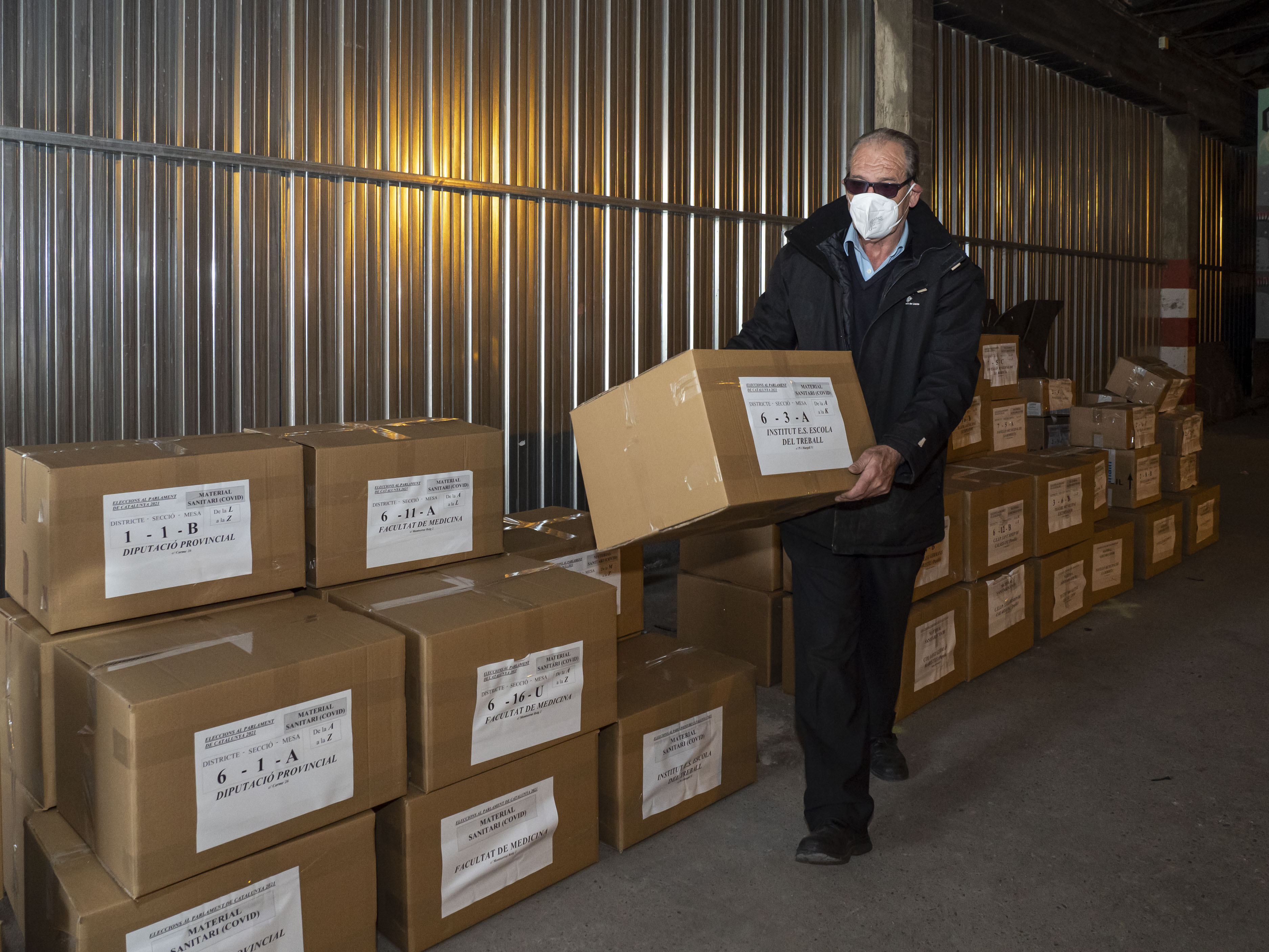 L’Ajuntament de Lleida ha començat a distribuir el material de protecció sanitària que s’utilitzarà aquest diumenge als 46 col·legis electorals amb motiu de les eleccions al Parlament de Catalunya. EPIs (equips de protecció integrals d’alta seguretat), mascaretes, guants, gel hidroalcohòlic o termòmetres formen part del material que està a punt al magatzem municipal de Gardeny des d’on s’ha començat a repartir als diferents espais perquè siguin utilitzats en la jornada electoral.