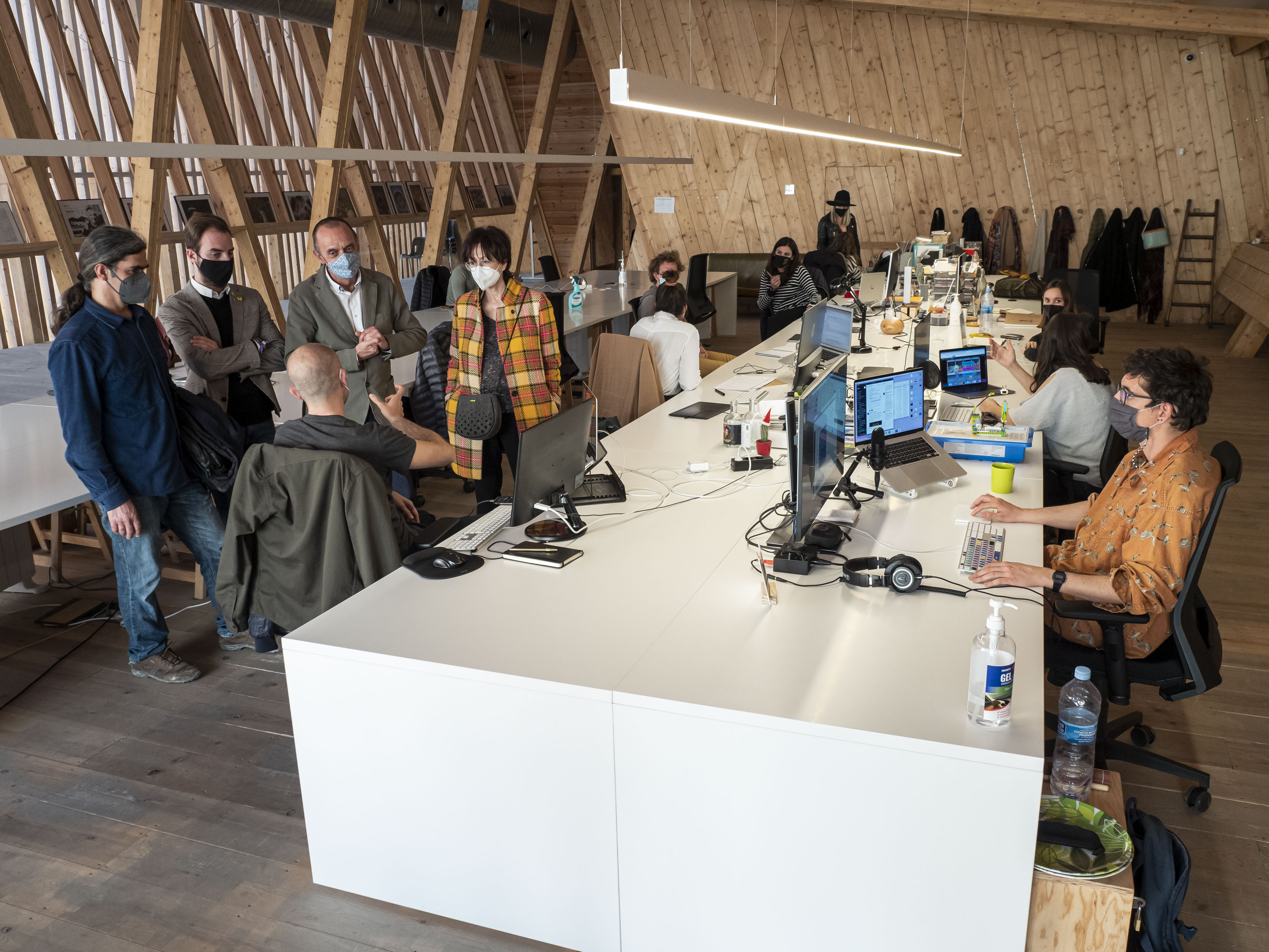 L’alcalde de Lleida, Miquel Pueyo, acompanyat del tinents tinents d'alcalde Sergi Talamonte i Montse Pifarré, que també és regidora del Centre Històric, i del regidor de Joventut, Festes i Tradicions, Ignasi Amor, ha saludat els i les coworkers que aquesta tarda estaven a l’espai i s’ha interessat pels projectes que estan duent a terme. L’alcalde ha remarcat les avantatges d’aquesta forma de treballar, ja que permet compartir espai i projectes empresarials, i endegar-ne de conjunts. A més, es creen vincles entre els i les professionals i això esdevé generador d’idees i de projectes. Un altre aspecte que ha valorat el paer en cap és la seva ubicació. "Entre els objectius d'aquest espai, hi ha la dinamització del barri i posicionar-lo com un pol de creativitat a la ciutat", ha dit.