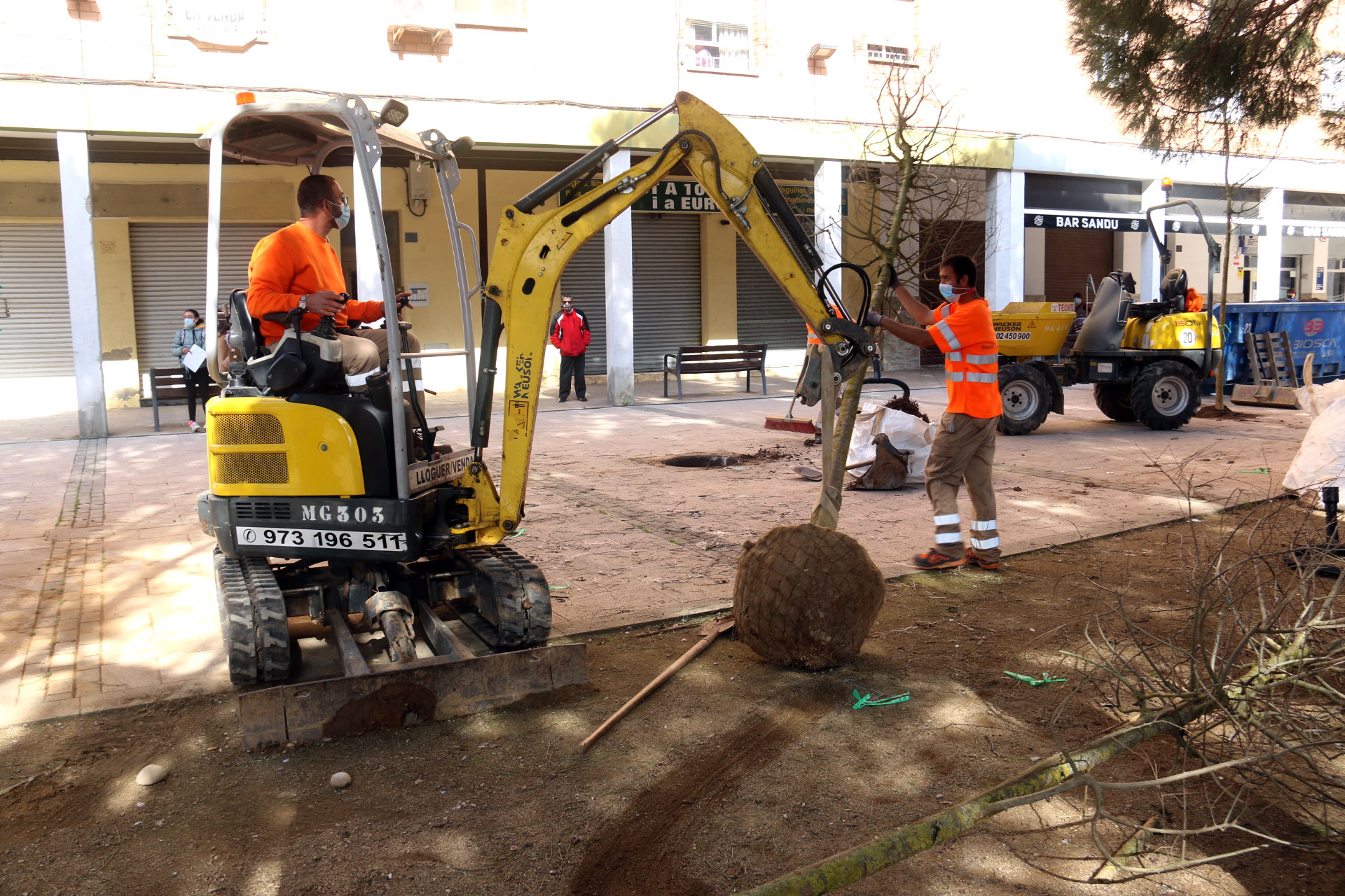 Per altra part, aquest dimarts s’ha completat el procés d’arrabassament de soques, que ha permès buidar i netejar 317 escocells en 19 dies, la majoria dels quals ja han estat replantats. A banda d’extreure la soca, durant el procés de plantació es revisa el reg i es repara, si és necessari. Als escocells s’hi situa també un tub d’airejament, que millora la transpiració especialment en zones amb entollaments, i quan la mida de l’escocell ho permet, s’instal·len tutors (pòsters de fusta) com a mitjà de suport per protegir els arbres sobretot en els primers mesos.