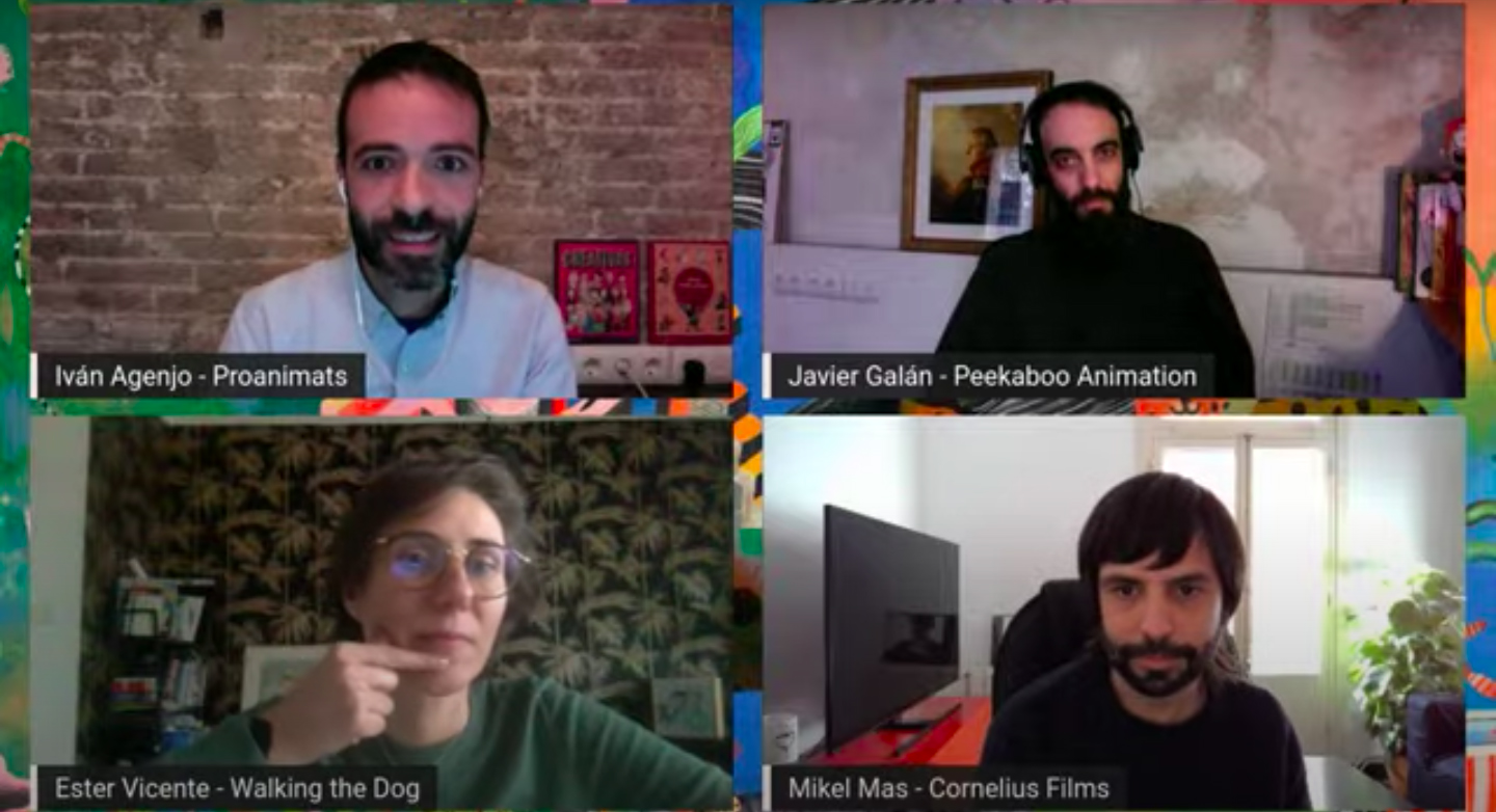A primera hora de la tarda, ha tingut lloc la primera de les conferències en línia d’aquesta 25a edició d’Animac, la taula rodona titulada “Animac Cartoon. Cartoons catalans vs. Covid” moderada per Ivan Agenjo, president de l’associació de productors d’animació Pro-Animats, amb la participació de Javier Galán, CEO i director creatiu de Peekaboo Animation, Mikel Mas, fundador i productor de Cornelius Films, i Ester Vicente, production manager al veterà estudi belga Walking the Dog. Durant la conversa han donat a conèixer els seus nous projectes i han explicat la seva experiència treballant en el món de l’animació en temps de la Covid-19 i com el teletreball s’ha imposat a la presencialitat en aquest sector eminentment digital.