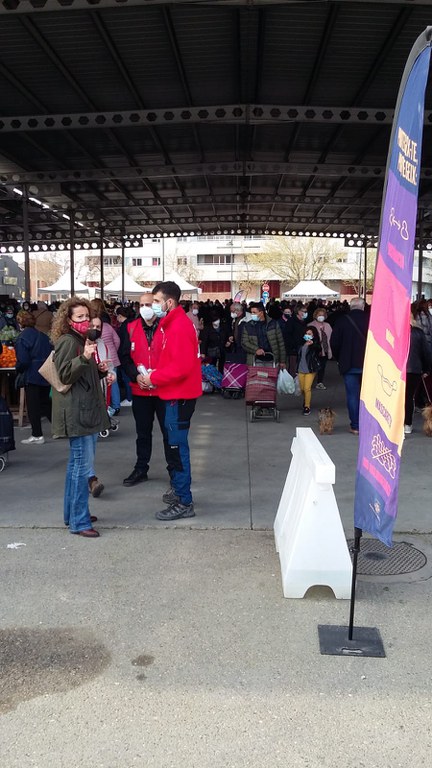 La Paeria i la Creu Roja de Lleida inicien la campanya per a fomentar l’ús correcte de la mascareta als mercats ambulants