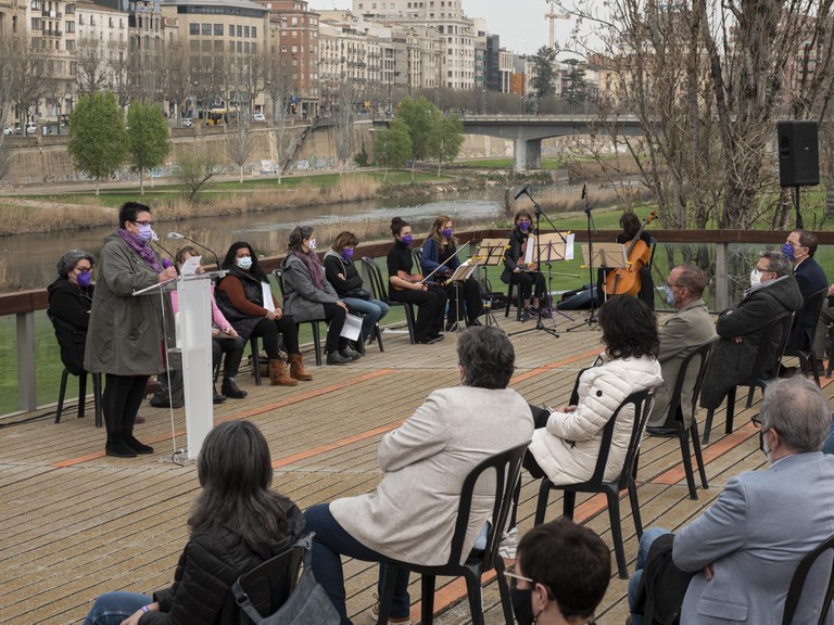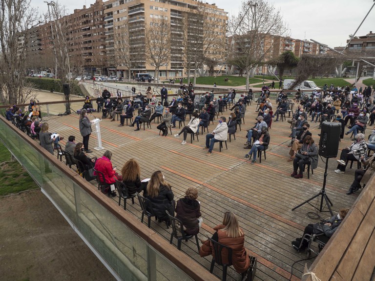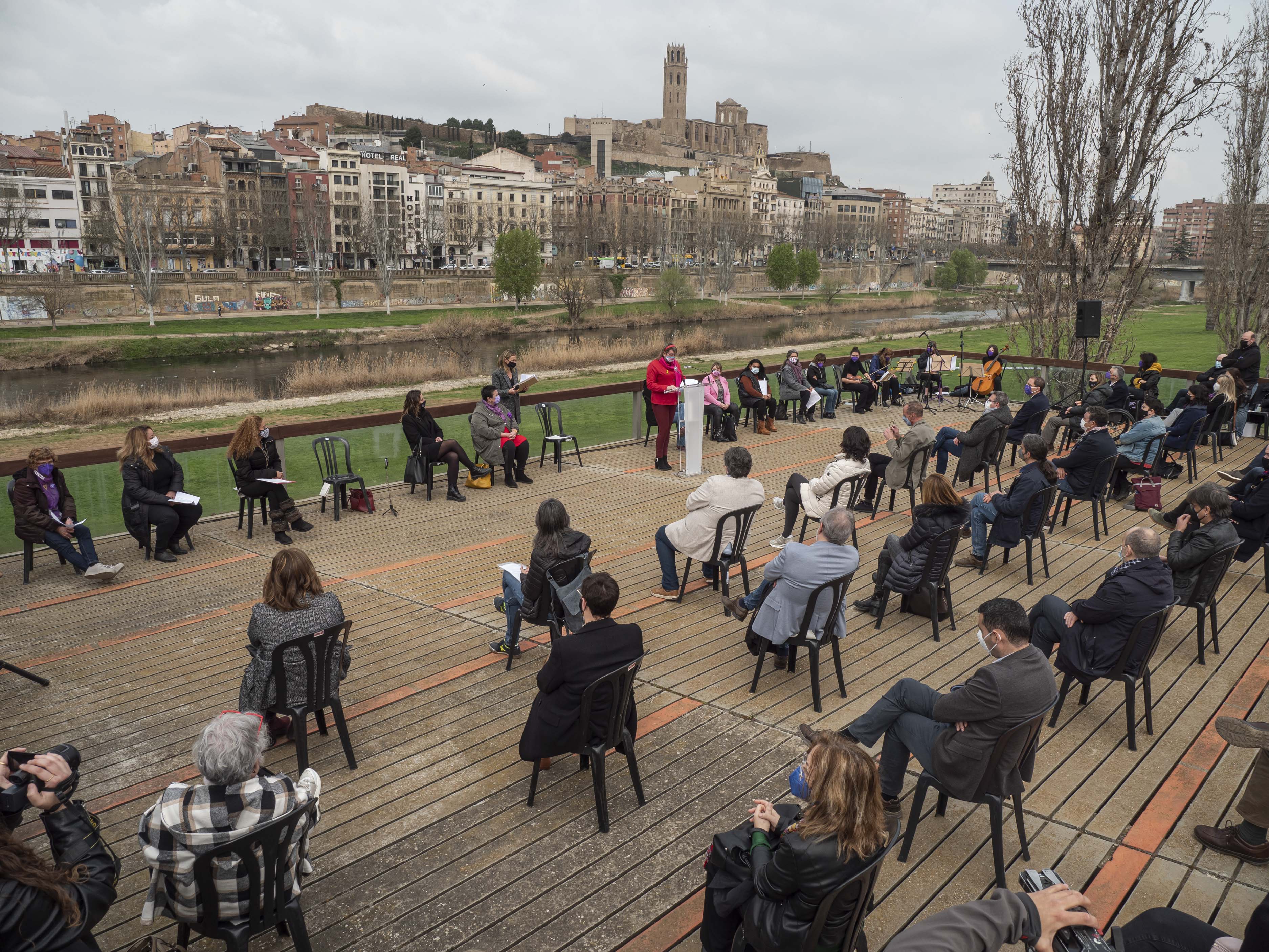 La plaça Blas Infante s’ha estrenat avui com a escenari de la commemoració institucional unitària del Dia Internacional de les Dones, que ha donat veu a tretze dones de diferents sectors de Lleida, que han reivindicat la igualtat de drets entre home i dona en tots els àmbits, amb un èmfasi especial en els que més han patit l’impacte de la pandèmia de la Covid-19.