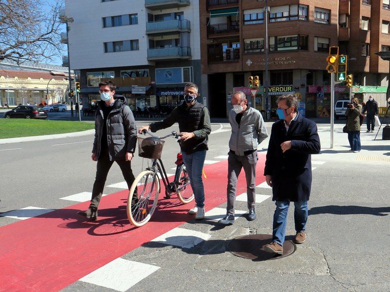 El paer en cap, Miquel Pueyo, el primer tinent d'alcalde i regidor d'Urbanisme, Toni Postius, i el regidor de Mobilitat, Joan Ramon Castro, han visitat avui l'espai de la plaça Ramon Berenguer IV, a la cruïlla entre Anselm Clavé i la Rambla Ferran, on s'acaba de fer una actuació urbanística. Les obres han tingut com a objectiu la millora de l'accessibilitat i la mobilitat a peu, en bicicleta i amb Vehicles de Mobilitat Personal (VMP) en aquest punt del centre de la ciutat, contribuint a la pacificació del trànsit.