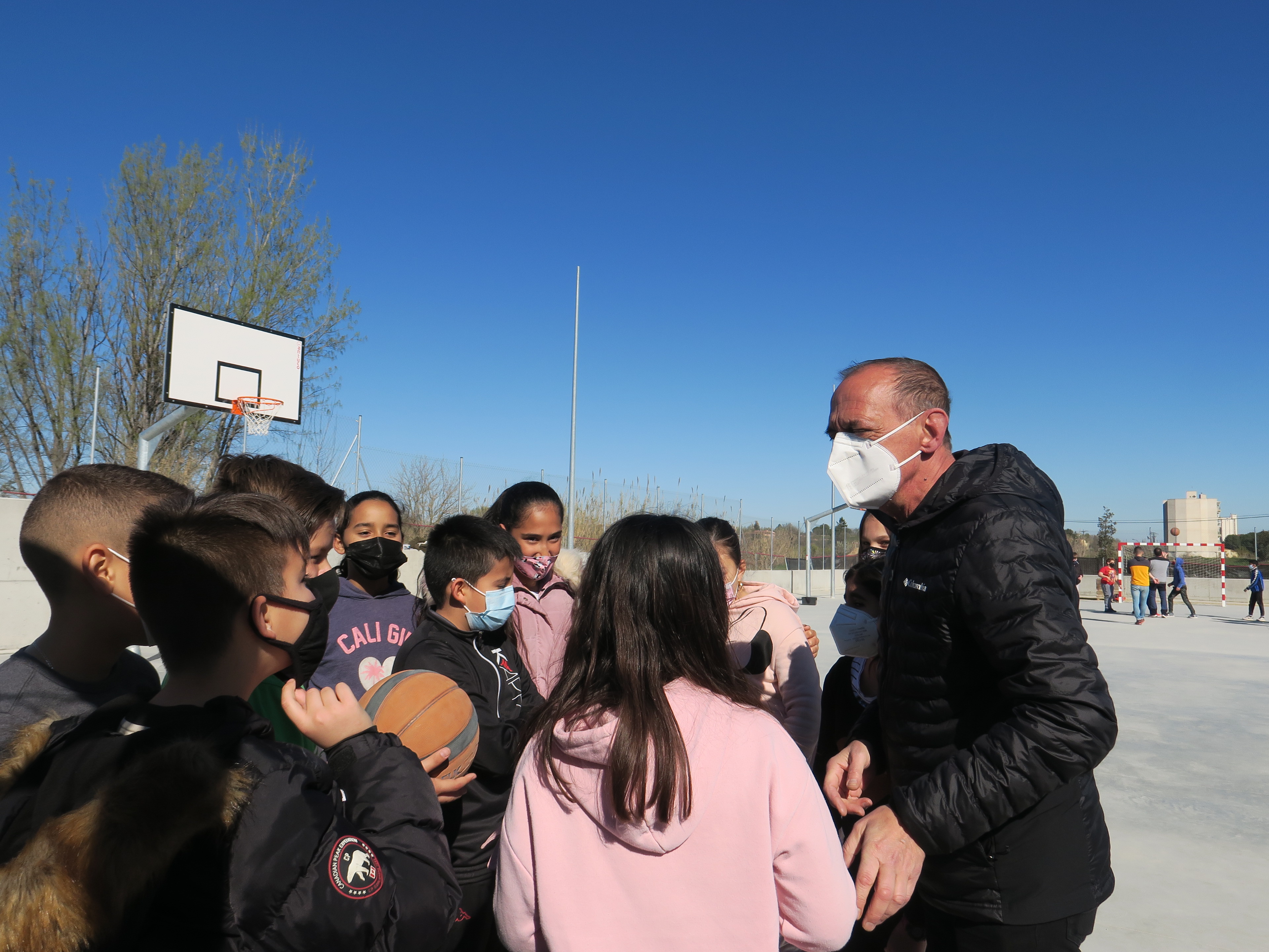 L’alcalde de Lleida, Miquel Pueyo, juntament amb la tinent d’alcalde i regidora d’Educació, Drets Civils, Cooperació i Feminismes, Sandra Castro, ha visitat aquest matí les obres de l’ Escola de Pinyana. El paer en cap, acompanyat de la directora del centre, Anna Moseguí, ha visitat la pista esportiva, primera peça d’aquest projecte escolar que ja està finalitzada i en funcionament.