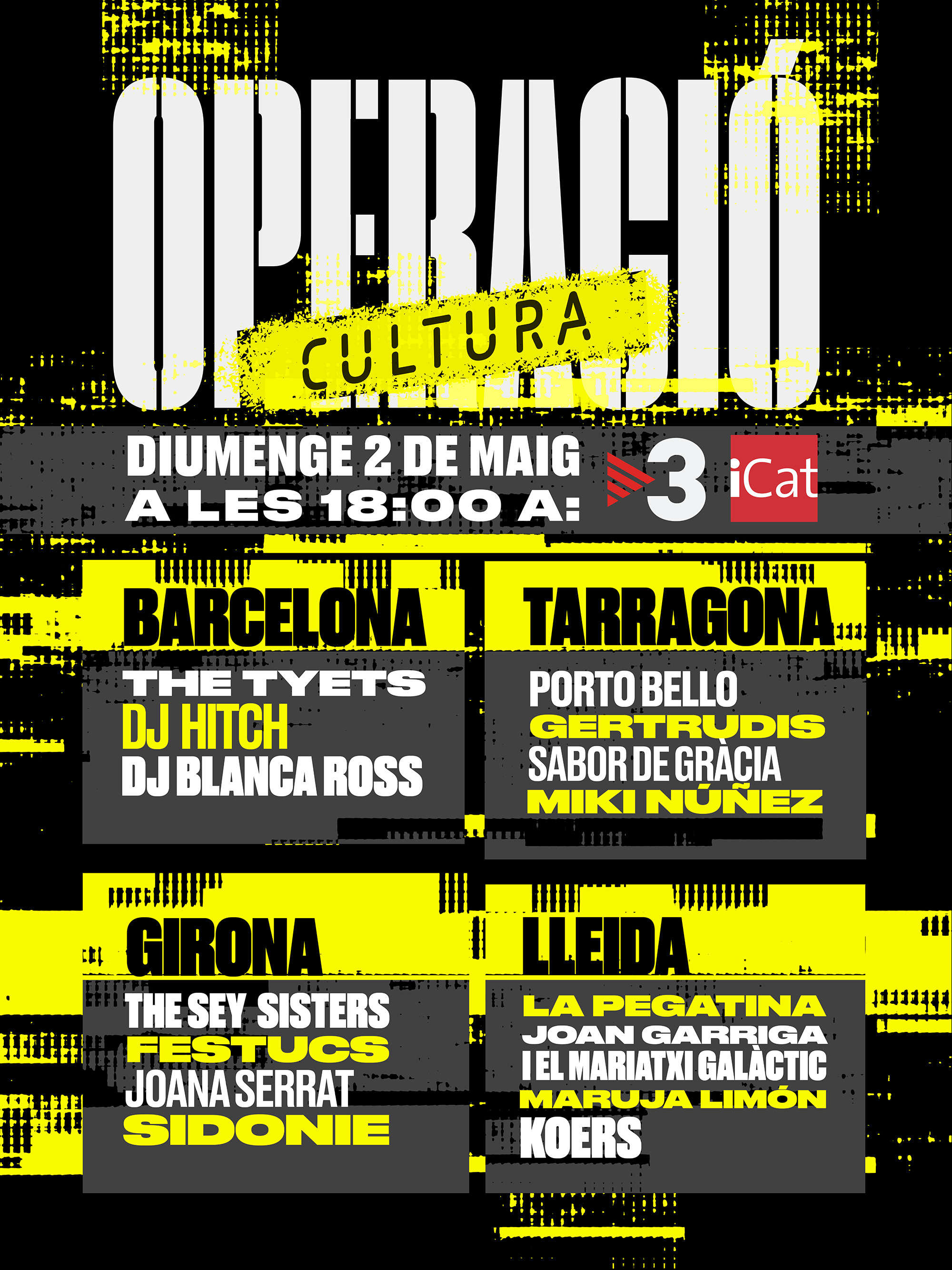 Operació Cultura és un espectacle mai vist fins ara, ideat per Jair Domínguez i Peyo, els populars presentadors de TV3, on està previst que passin coses imprevistes, amb la música en directe com a protagonista, i que servirà de colofó a la quinzena cultural que es va posar en marxa sota el lema #ImpulsemCultura.
