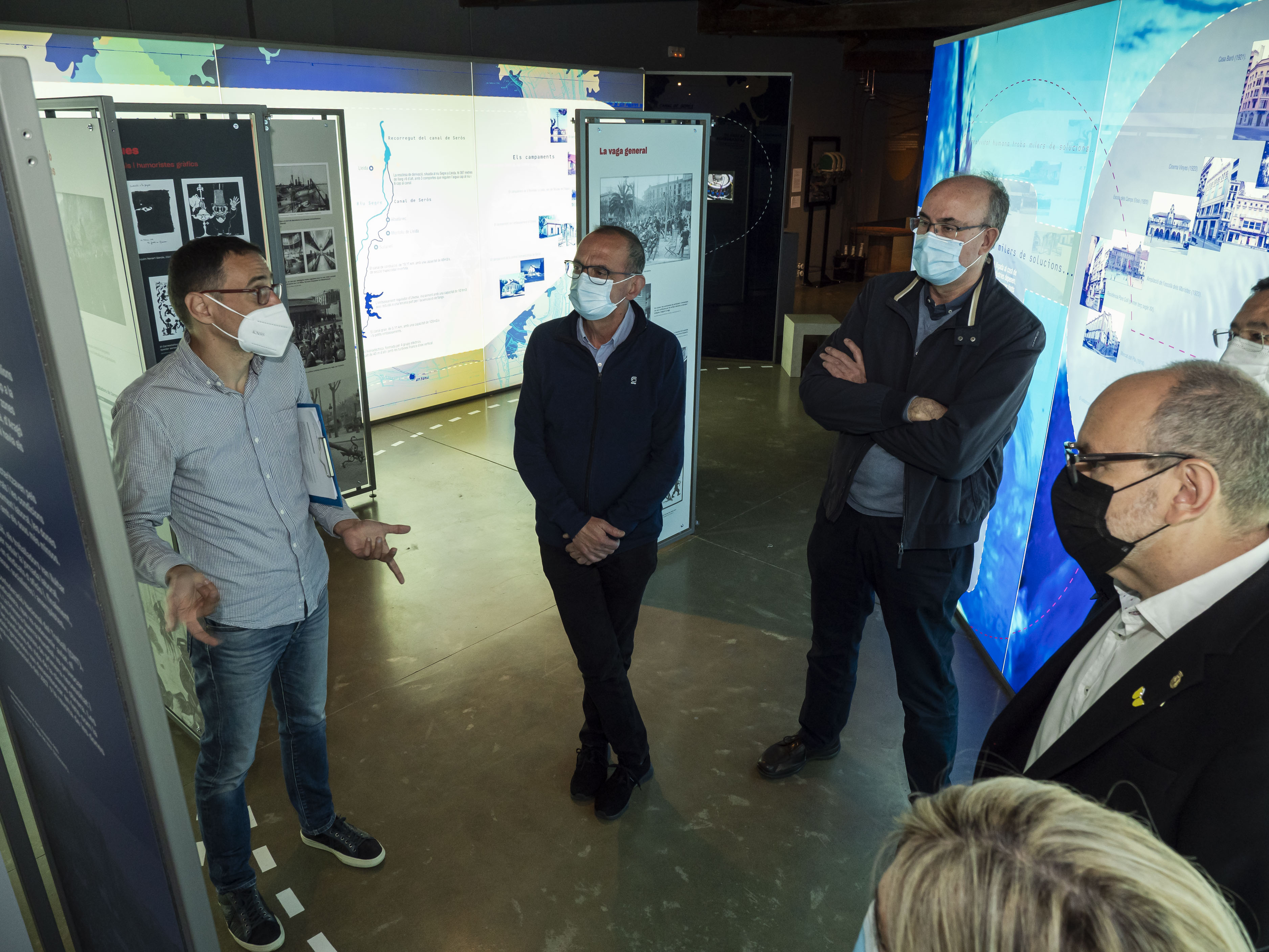 L’alcalde de Lleida, Miquel Pueyo, ha visitat aquest migdia l’exposició “La vaga de la Canadenca”, que es pot veure al Museu de l’Aigua, al Campament de la Canadiense, fins el dia 26 de maig. Han assistit també a la visita el regidor de Cultura Jaume Rutllant, el delecat del Govern de la Generalitat a Lleida, Ramon Farré, i el director dels SSTT de Treball, Afers Socials i Famílies, Vidal Vidal.