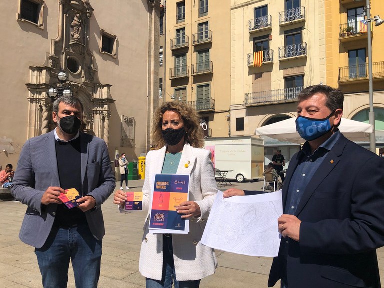 La regidora de Consum, Comerç i Mercats, Marta Gispert, acompanyada del regidor de Mobilitat, Joan Ramon Castro, i del regidor d’Ocupació i Responsabilitat Social, David Melé, ha presentat els elements de la campanya que serà visible a través d’unes 10.000 adhesius que s’empegaran a les taules de les terrasses dels bars de tota la ciutat i que la Paeria també repartirà a qui en vulgui fer ús informatiu. A més, es posen en circulació altres 400 cartells que es podran llegir a les zones comercials més concorregudes, com ara l’Eix i la Zona Alta.