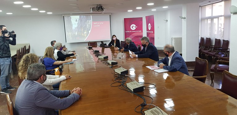 La Cambra de Comerç i Indústria de Lleida ha acollit aquesta tarda la presentació del projecte ‘Impulsem Lleida’, una acció finançada per l’Ajuntament de Lleida amb la col·laboració de la Cambra de Comerç i Indústria de Lleida en el marc de les actuacions per donar suport al teixit empresarial de la ciutat davant l’impacte de la Covid-19.