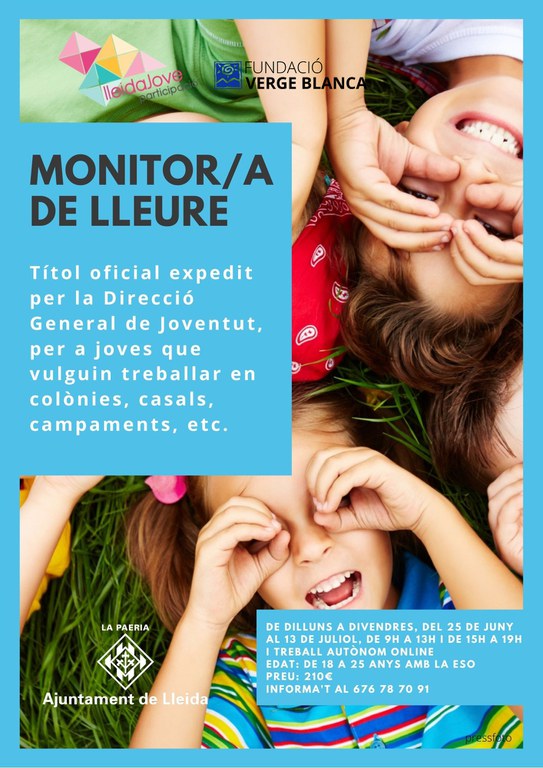 El curs, que està adreçat a aquelles persones que vulguin treballar en activitats de lleure d’infants i joves en colònies, centre, escoles, casals de vacances, moviments educatius i ludoteques, té un cost de 210 €. Està organitzat per LleidaJove de l’Ajuntament de Lleida i la Fundació Verge Blanca.