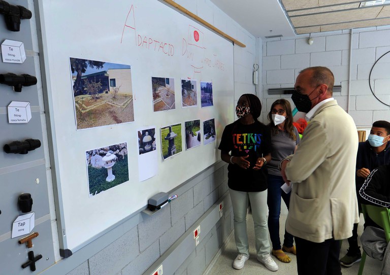 Un cop finalitzada la visita a les instal·lacions de la partida de Vallcalent, la comitiva s’ha traslladat a l’Escola de Jardineria, on la cap d’estudis, Carolina Sarri, els ha guiat en el recorregut per les aules on estudien 35 alumnes sota la tutela de 12 professors.