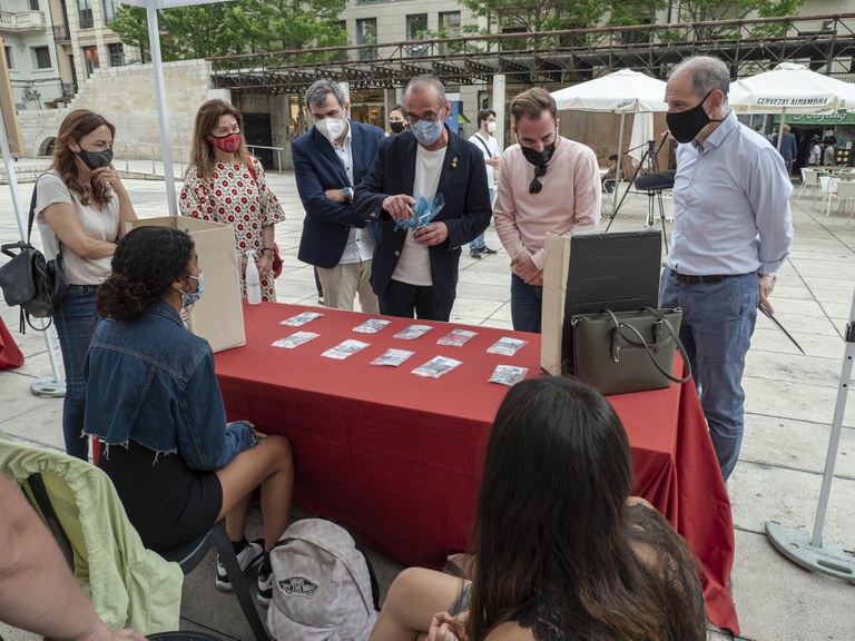 L'alcalde, Miquel Pueyo, el regidor d'Ocupació, Responsabilitat Social i Horta i president de l'IMO, David Melé, i el regidor de Joventut, Ignasi Amor, han visitat el mercadet dels Joves Empresaris de Ponent (JEP) a la plaça de Sant Joan.
