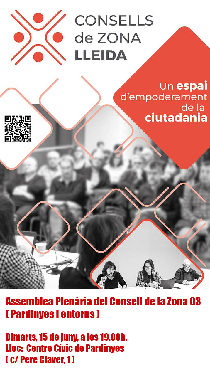 La Regidoria de Participació Ciutadana i Lluita contra la Corrupció ha convocat per aquest dimarts, 15 de juny, el plenari del Consell de la Zona 03, del barri de Pardinyes i entorns, que tindrà lloc a les 19 h a la sala d’actes del Centre Cívic (al c/ Pere Claver, 1). A l’ordre del dia, s’ha inclòs informar sobre l’acció que l’Ajuntament està implant al barri amb la recollida de residus Porta a Porta i les millores que s’han fet a la rambla del Corregidor Escofet, així com d’altres actuacions urbanes.