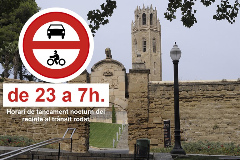 Els vehicles no podran accedir en horari nocturn al Turó de la Seu Vella a partir de demà. El consorci, d’acord amb la Paeria, ha pres la decisió de tancar l'accés per la Porta del Lleó, mitjançant un sistema de pilones que deixarà, però, el pas obert per als vianants.