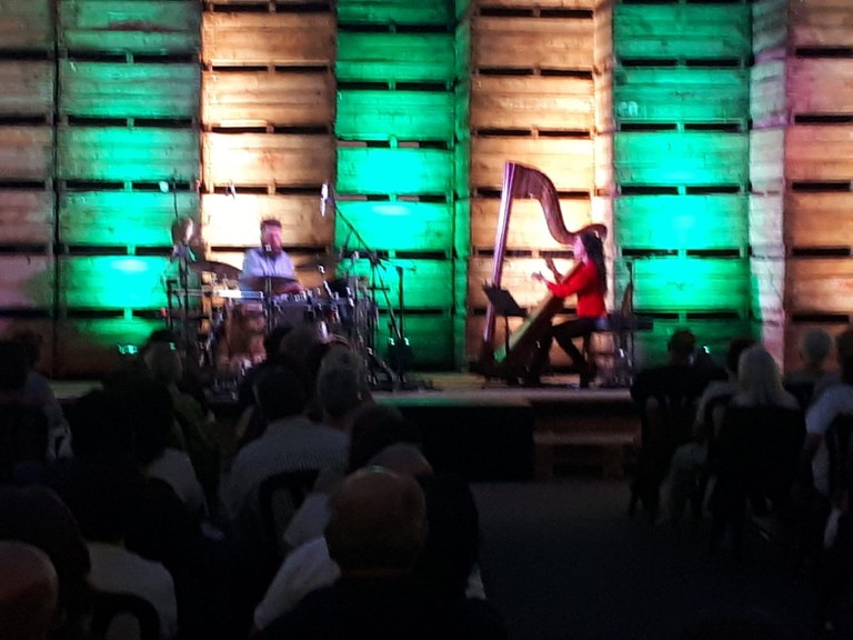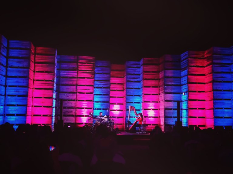 El recital, que forma part de la cinquena edició del cicle Entre Arpes, ha tingut lloc en un escenari únic i efímer, ja que s’ha muntat per l’ocasió un auditori de palets, dissenyat per Josep Maria Puigdemassa, a la central frutícola d’Arilfruit.