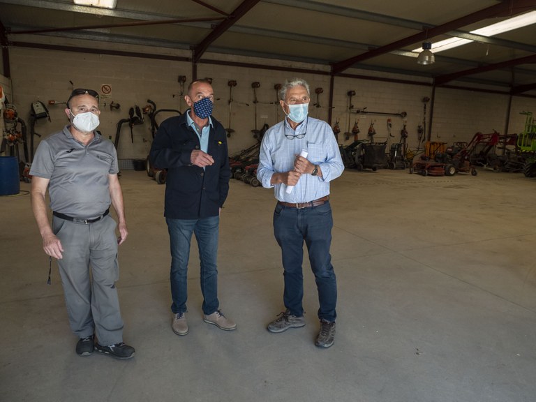 El Paer en Cap, Miquel Pueyo, ha visitat aquest matí les instal·lacions del parc i la pista d’atletisme de Les Basses, per conèixer millor les tasques de manteniment de jardineria que s’hi duen a terme, a càrrec de l’Escola de Jardineria i el Centre Especial de Treball. Pueyo ha estat acompanyat en la visita per Josep Maria Revés, director d’aquests dos centres municipals.