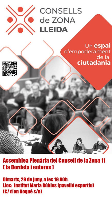 Els Consells de Zona són espais participatius i de proximitat on el veïnat i les entitats poden informar-se, presentar propostes i opinar sobre temes d’interès per a la comunitat. Pretén ser un canal de comunicació directa, amb un contacte permanent amb el regidor/a de zona, perquè es puguin treballar i resoldre preocupacions o propostes, alhora que els electes retin comptes a la ciutadania. La ciutat de Lleida està dividida en quinze Consells de barri o zona. Consulta’ls aquí.