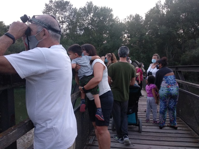 Els i les participants de la visita guiada a la Mitjana d’aquest dissabte 3 van poden observar el canvi del parc entre el dia i la nit. La Regidoria d’Habitatge i Transició Ecològica organitza cada any aquesta activitat, que consisteix en un recorregut per aquest espai que comença quan el sol es va ponent i acaba quan ja és fosc. La visita permet observar merles, tudons, conills, etc. i van poder sentir el cant del rossinyol bord i del pit-roig, entre d’altres. També es van veure diversos rastres d’animals, com un cau de teixó, forats al terra fets per insectes o camins de porc senglars. Al riu van observar orenetes, falciots, ànecs, cigonyes, milans, martinets de nit i un gran estol de cornelles.
