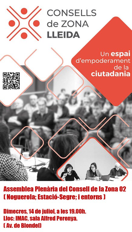 La Regidoria de Participació Ciutadana i Lluita contra la Corrupció ha convocat per aquest dimecres, 14 de juliol, el plenari del Consell de la Zona 2, del Centre Històric, que engloba els barris de Noguerola, Estació-Segre i entorns, que tindrà lloc a les 19 h, a la sala Alfred Perenya, de l’Institut Municipal d’Acció Cultural. A l’ordre del dia, s’ha inclòs informar sobre les dinàmiques de treball del Grup de Dinamització (comissió permanent) del consell de la Zona 2.