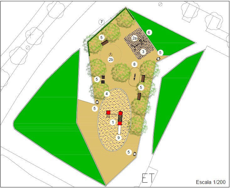 L’adequació del parc preveu també la renovació del mobiliari urbà amb la instal·lació de tres nous bancs, dues cadires i tres papereres. També s’enretiraran les cadires que hi havia a l’àrea de jocs, repintar les estructures ja existents i col·locar de nou el cartell indicador d’àrea de jocs infantils.