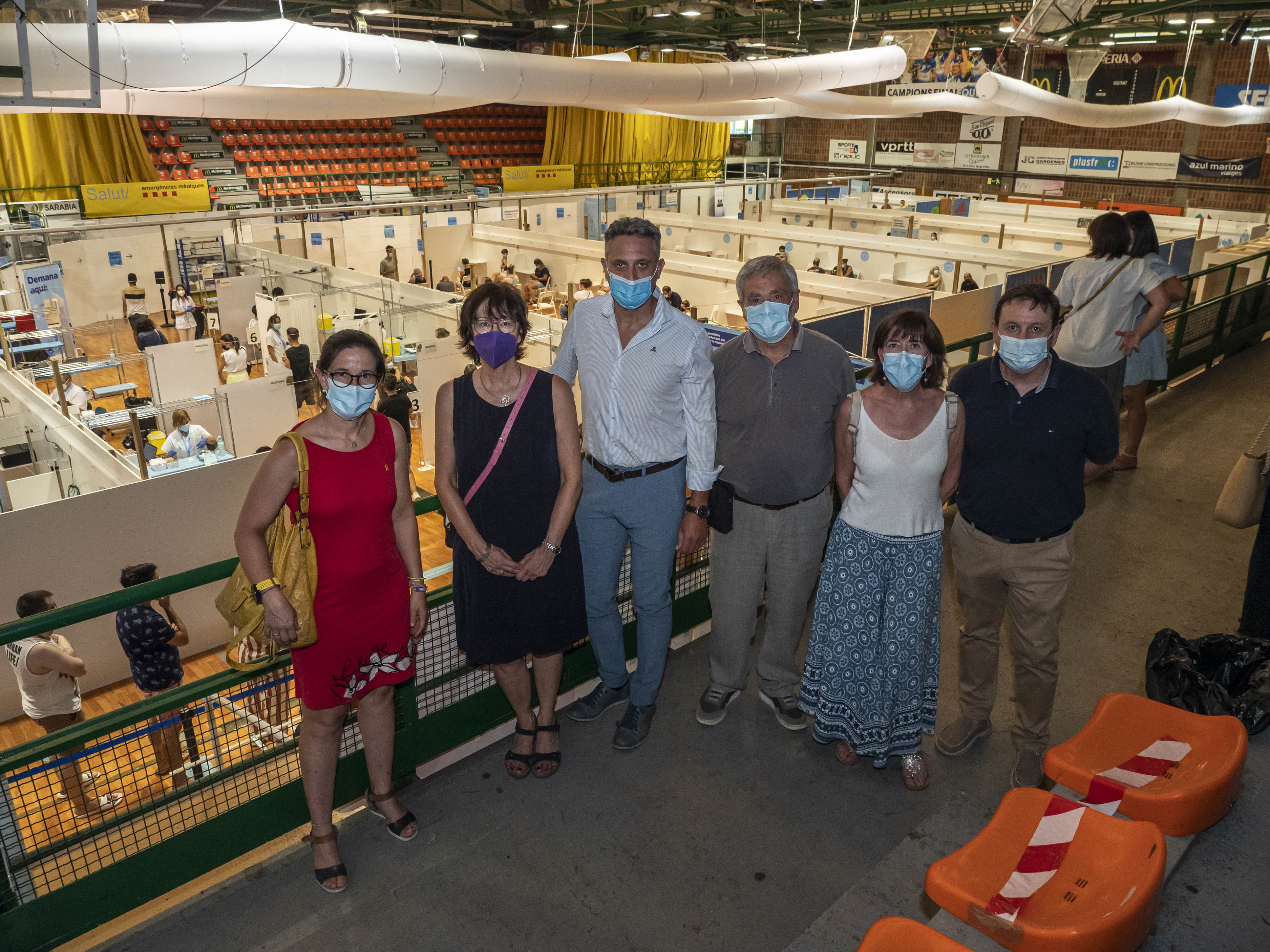 La tinent d’alcalde i regidora de Salut, Montse Pifarré, juntament amb la gerent de la regió sanitària de Lleida, Divina Farreny, el president del Col·legi de Metges de Lleida (COMLL), Ramon Mur, i la presidenta del Col·legi d’Infermeres i Infermers de Lleida, Mercè Porté, ha visitat avui el Pavelló Onze de Setembre, punt central de vacunació contra la Covid-19 a Lleida des del passat 26 de gener.