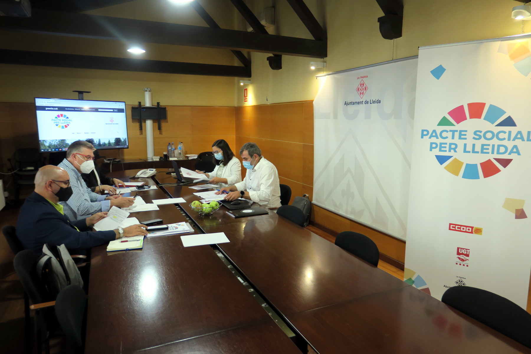Aquest matí ha tingut lloc a l’Ajuntament de Lleida la primera reunió de treball de la Comissió de Seguiment del Pacte Social per Lleida, que es va constituir oficialment el passat mes de juny per tal d’avaluar periòdicament el compliment dels compromisos assolits en aquest conveni signat per la Paeria amb les centrals sindicals més representatives de la ciutat.