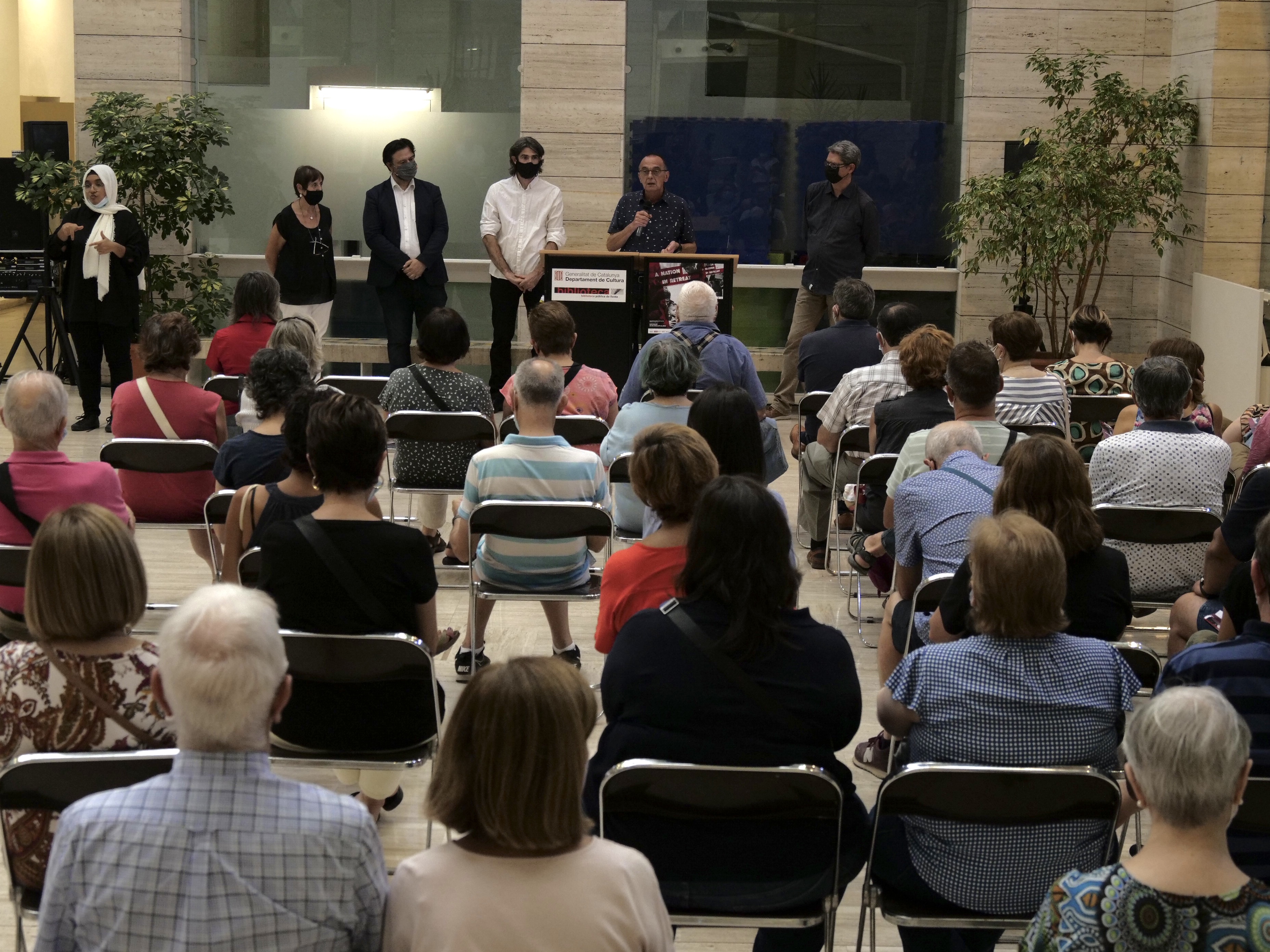 A l'acte d'obertura han assistit Eric Forcada, comissari de l’exposició; Miquel Serrano, historiador i conservador del Museu Memorial de l’Exili a la Jonquera; Maria Antònia Capdevila, directora de la Biblioteca Pública de Lleida; Albert Turull, director de Serveis Territorials de Cultura; Sandra Castro, 4a tinenta d’alcalde i regidora d’Educació, Cooperació, Drets Civils i Feminismes, i David Melé, regidor d’Ocupació, Responsabilitat Social i Horta.