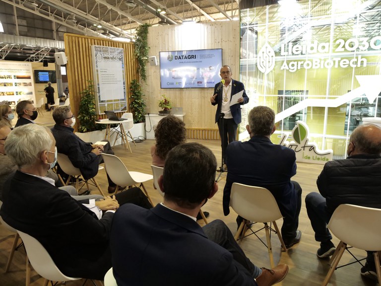 El paer en cap també s’ha dirigit als organitzadors del Forum Datagri per informar-los que, a més del potencial i la fortalesa del sector agrari, fora de l’entorn de Barcelona, el principal hub tecnològic de Catalunya està al Parc Científic i Tecnològic Agroalimentari.