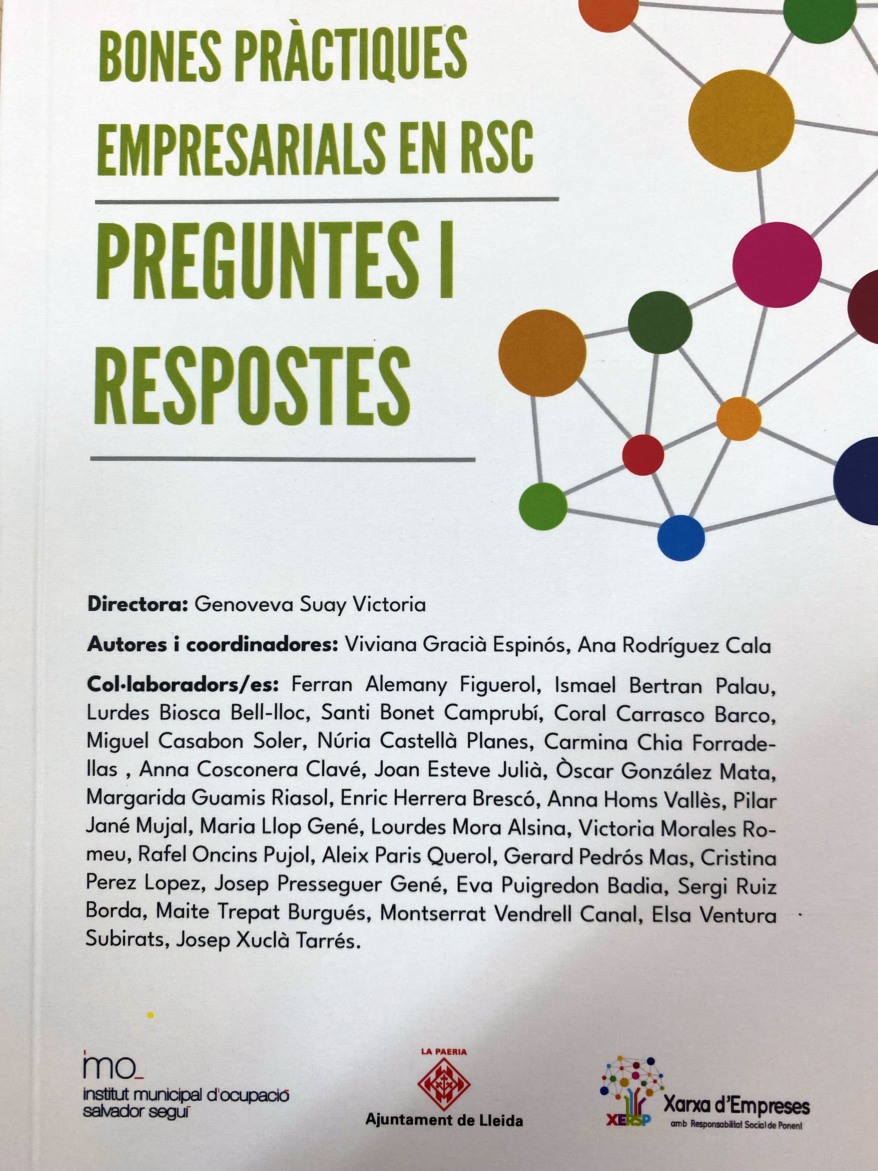 L’Institut Municipal d’Ocupació (IMO) ha recollit en un llibre les consultes més habituals de les empreses sobre la responsabilitat social corporativa en el si de les organitzacions. La publicació “Bones Pràctiques Empresarials en RSC. Preguntes i respostes” ha sorgit del projecte innovador Xarxa d’Empreses amb Responsabilitat Social de Ponent (XERSP), que té per objectiu conèixer l’experiència i l’evolució que s’està registrant en aquest àmbit per incorporar-la a l’estratègia de les empreses. El llibre, que s’ha presentat aquesta setmana al Jardí Botànic de Lleida – Arborètum, pretén ser una eina de suport i de consulta per a empreses que comencen o que volen aprofundir en la tasa de la responsabilitat social, prenent d’exemple accions que ja han aplicat altres organitzacions i que poden orientar altres firmes.