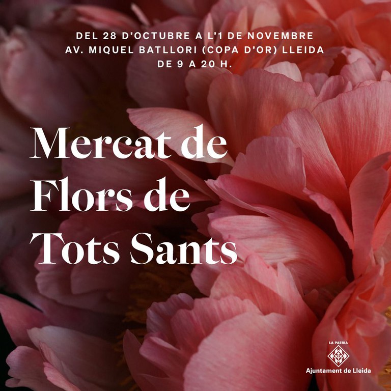 L’Ajuntament de Lleida, a través de la Regidoria de Consum, Comerç, Mercats i Participació impulsa el Mercat de Flors de Tots Sants, a partir de dijous 28 d’octubre i fins al mateix dia 1 de novembre.