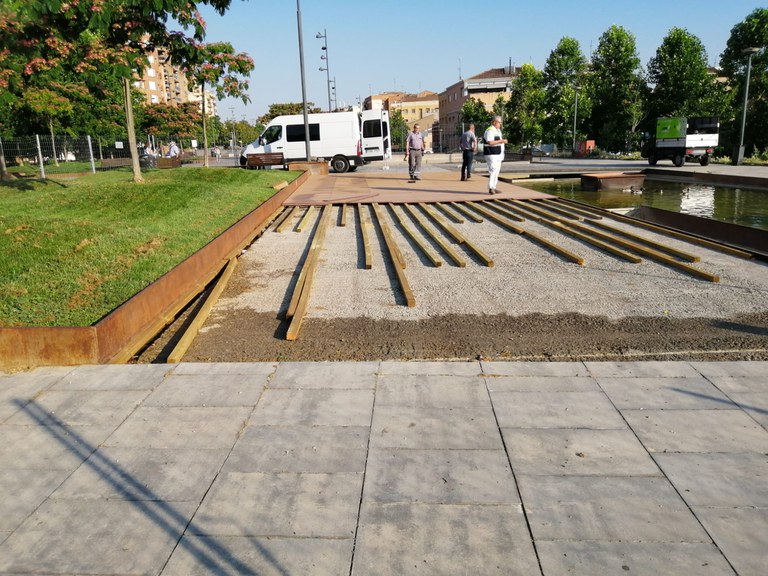 L’Ajuntament de Lleida inicia demà la segona fase dels treballs de millora del paviment de tarima de fusta natural existent del Parc de les Vies. En aquesta segona fase es contempla la renovació de 100 m2 de tarima. Les obres duraran unes quatre setmanes. L’actuació consisteix a retirar la tarima de fusta natural en mal estat i deteriorada, que comporta un manteniment continuat, i substituir-la per una tarima tecnològica amb acabat semblant a la fusta.