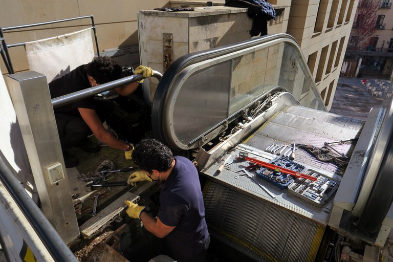 La Paeria ha iniciat avui les obres de renovació de les escales mecàniques de la plaça Sant Joan, ja que la seva maquinària es trobava molt malmesa, amb avaries freqüents causades per actes vandàlics, i havia arribat al final de la seva vida útil.