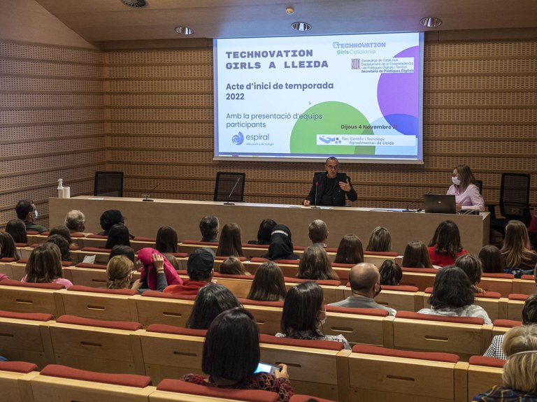 La presentació de la fase local de Technovation Girls Catalunya ha comptat amb la xerrada de Karina Gibert, directora del Centre d’Intel·ligència Artificial de la UPC i representant de DonesCoeinf. Hi han assistit el tinent d’alcalde i regidor de Promoció Econòmica i Emprenedoria Paco Cerdà, la regidora de Persones, Comunitat i Agenda 2030, Mariama Sall; Magda Valls, directora de l'Escola Politècnica Superior de la UdL, el gerent del Parc, Miquel Aran i el president d'AETI, Josep Ramon Freixanet.