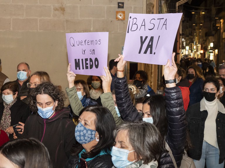 La plaça Paeria ha estat aquest vespre l’escenari de la concentració ciutadana de rebuig a la violència, davant l’agressió sexual que va patir una dona ahir de matinada a la falta de la Seu Vella.