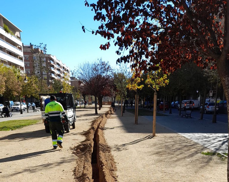 Obres per instal·lar la xarxa de reg a la rambla Corregidor Escofet