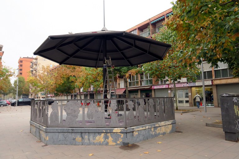 L’actuació, que compta amb un pressupost de 3.587,65 euros, consisteix en les tasques de neteja i sanejament de la base de l’estructura, que també es pintarà juntament amb les baranes, el pilar i la coberta de la pèrgola. Està previst que els treballs, que s’han vist afectats per la pluja, puguin quedar acabats a mitjans de la setmana vinent.