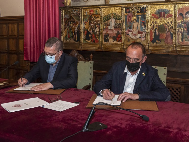 L’alcalde de Lleida, Miquel Pueyo, i el president de l’Associació de Voluntaris de Protecció Civil (AVPC), Josep Lluís Valls, han rubricat aquesta tarda, al Saló del Retaule de la Paeria, el conveni de col·laboració a través del qual s’estableix la participació i compromís d’ambdues parts en els diferents serveis que es presten a la ciutadania. El conveni, que tindrà una vigència d’un any, des del moment de la seva signatura, és prorrogable de forma expressa fins a un màxim de quatre anys.