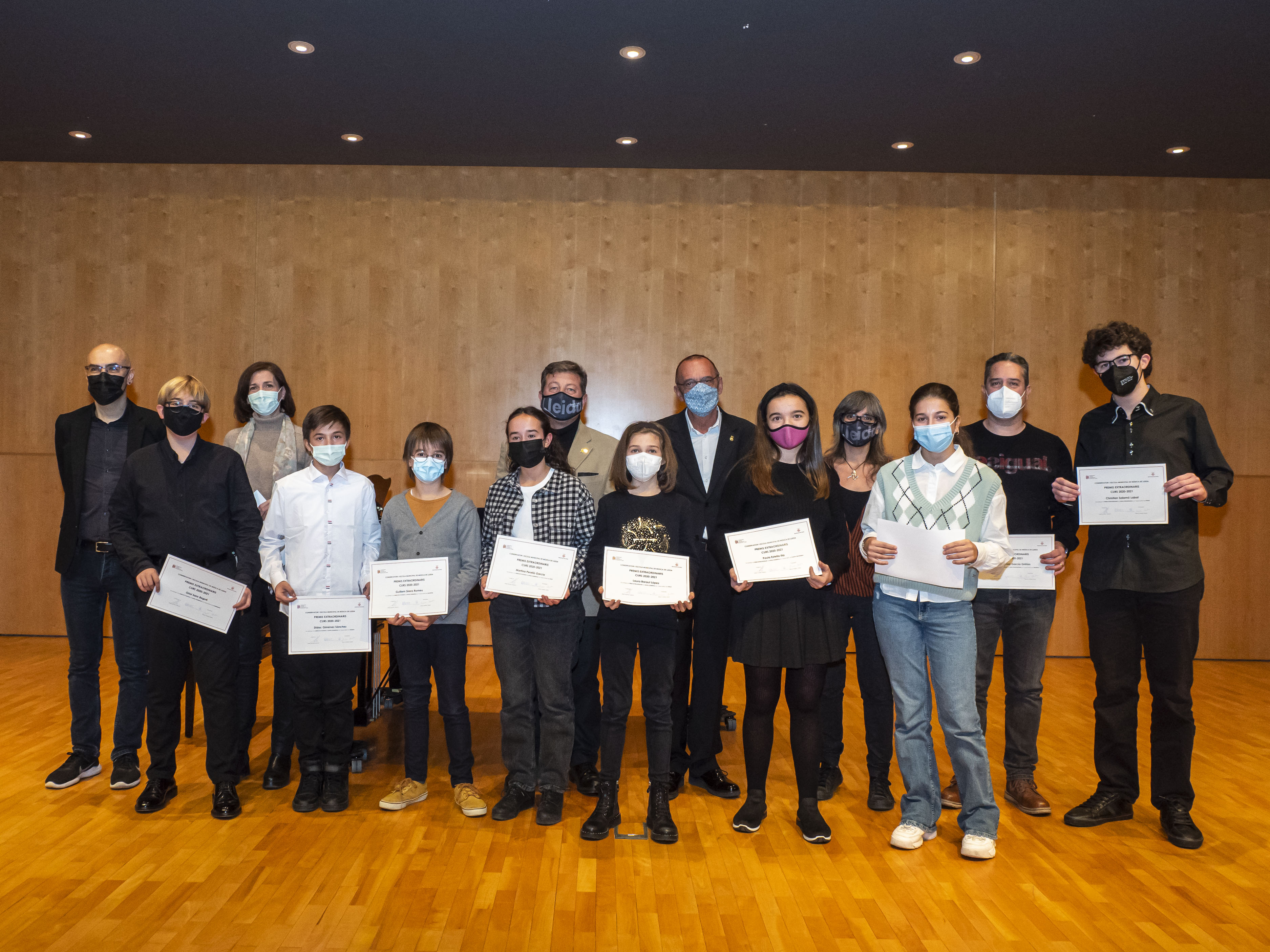 Un cop lliurades les distincions, ha tingut el tradicional concert a càrrec d’alumnes de diferents instruments. En aquesta ocasió, el programa ha inclòs obres de J.S.Bach ( ‘Minuet’), S.Malzew (‘Scherzando’) a càrrec d’Oriol Sans Begué, al contrabaix; la peça ‘Siciliana’ de G.Fauré, interpretada per Paula Estela Illa, flauta travessera; la peça ‘Meditació’ de J.Massenet, amb la interpretació de Guillem Sirera Romeu al saxòfon; la ‘ Canzonetta’ de G.B.Pergolessi per a trompa, interpretada per Dídac Giménez Sánchez; Laura Baraut López (Viola) ha interpretat la Sonata en re m: largo i allegro de J.C.Pepusch; Martina Perelló Gracia (violí) interpretarà l’ Ave Maria de Gounoud, Carla Raidó Escoda (guitarra) les peces Länder n.9 de J.K Mertz i Pasodoblillo, de B. de Calatayud i clourà el concert Cristian Salamó Labat amb la interpretació al piano de l’obra Corpus Christi en Sevilla d’Isaac Albéniz. Els alumnes estaran acompanyats pels pianistes Jordi Alfageme i Miquel Gonzàlez.