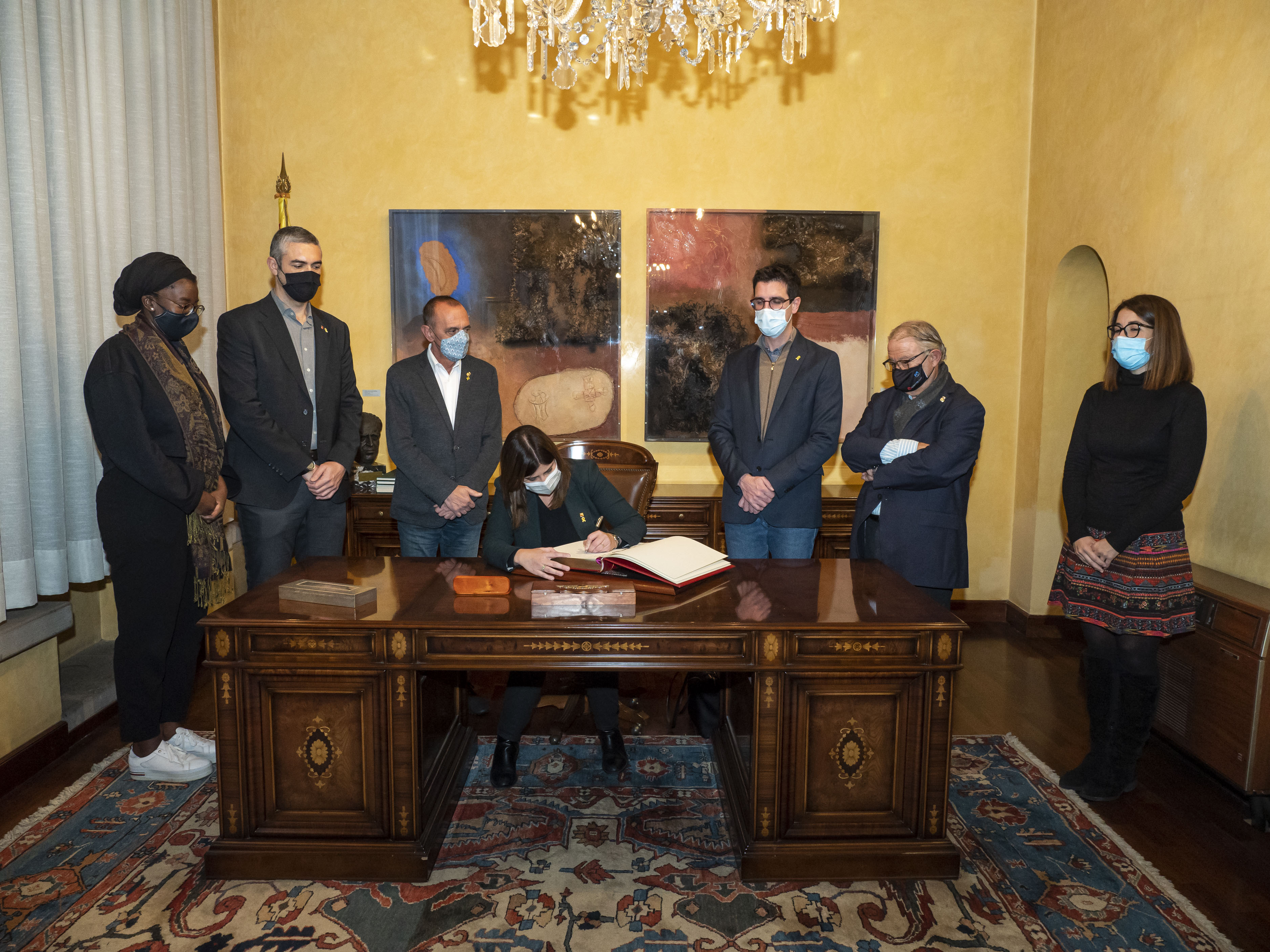 Geis ha signat al Llibre d’Honor de la Paeria i Pueyo ha obsequiat la consellera amb una reproducció del Llibre dels Usatges com a record de la seva estada a Lleida i a la Paeria. En l’acte també han estat presents el tinent d’alcalde Toni Postius i Paco Cerdà, les regidores Mariama Sall i Cristina Morón i el delegat de la Generalitat a Lleida, Bernat Solé.