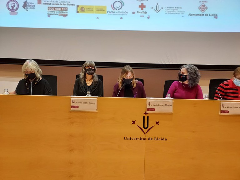 La periodista Rosa M.Calaf ha moderat la taula d’expertes de la jornada que organitzen anualment la Paeria, la Creu Roja i la Universitat de Lleida, amb el suport del grup de Dones Lleida i de Marea Lila, en el marc dels actes en commemoració del 25 de novembre, Dia Internacional per a l’eliminació de la violència contra les donesLa tinent d’alcalde i regidora de Feminismes, Sandra Castro, ha recordat la importància del treball en xarxa per promoure la recuperació integral de totes les dones i els seus fills i filles que han patit aquest tipus de violència, i la necessitat d’afrontar els reptes actuals que presenta aquesta xacra