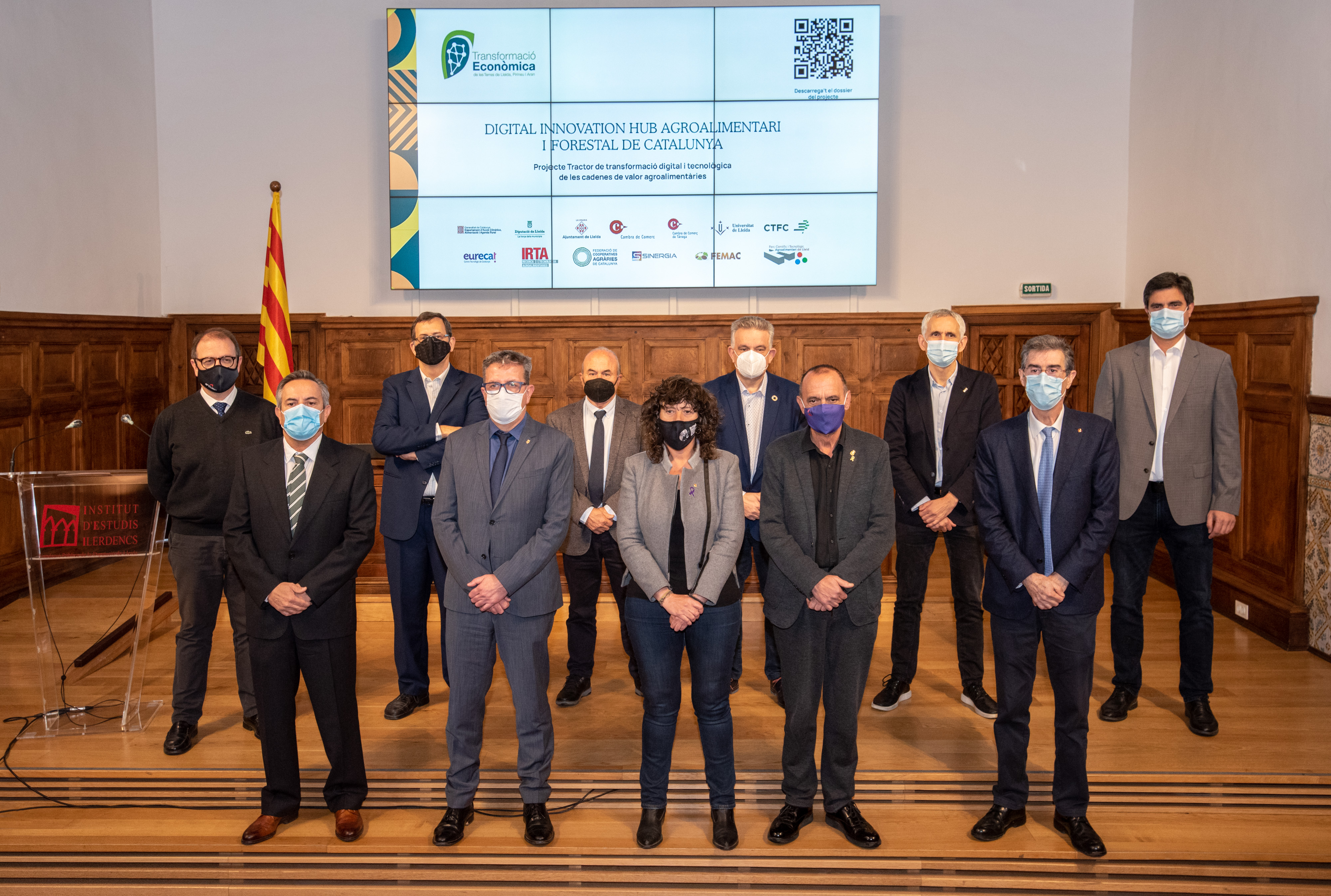 L’Aula Magna de l’Institut d’Estudis Il.lerdencs de Lleida ha acollit, aquest migdia, la signatura del protocol de col.laboració que impulsarà la creació del Centre d’Innovació Digital Agroalimentari i Forestal de Catalunya, un hub d’innovació que es convertirà en una eina estructural per generar oportunitats que permetin als agents implicats en les cadenes de valor agroalimentàries i forestals a escala regional, funcionar com a finestreta única, física i virtual, afavorint les iniciatives i infraestructures existents i, als agents vinculats, facilitar que disposin d’un entorn on poder co-definir i testejar solucions innovadores.