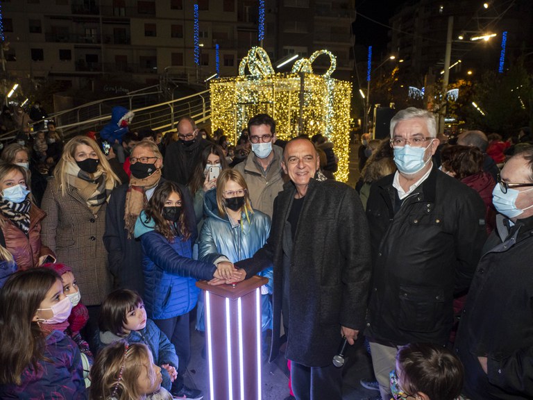 L’alcalde de Lleida, Miquel Pueyo, ha presidit aquest vespre l’encesa de les llums de Nadal, que enguany ha tingut lloc a les places Paeria i Ricard Viñes. Un acte que ha compartit amb la regidora de Consum, Comerç, Mercats i Participació, Marta Gispert, i al qual ha assistit una nodrida representació de regidors de tots els grups municipals de l’Ajuntament de Lleida, representants de les associacions de comerciants de l’Eix Comercial i la Zona Alta, així com de nens i nenes, acompanyats dels seus pares. Dos d’ells han estat els encarregats de prémer el botó amb el qual s’ha il·luminat els principals carrers de la ciutat.