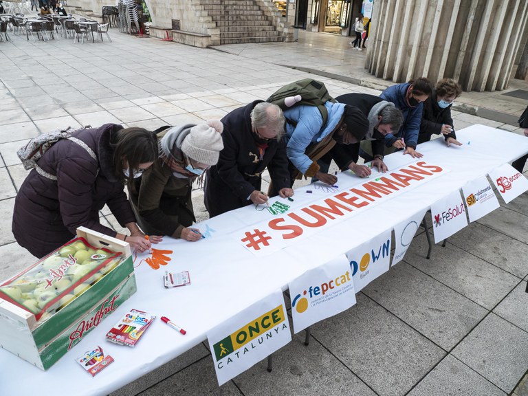 Les entitats i federacions del sector han presentat els nous continguts de l’Observatori sobre discapacitat a Lleida i han confeccionat un mural participatiu sota el lema #SumemMans