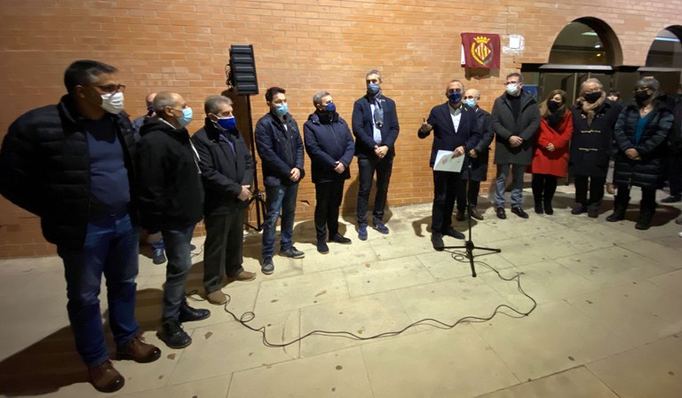 Miquel Pueyo ha volgut donar transcendència a l’acte d’aquest vespre, afegint que les comunitats, les ciutats i les societats humanes han de tenir memòria i, de vegades, aquesta cal apuntalar-la damunt de fites. “Avui som aquí per celebrar la represa de l’activitat esportiva en el pavelló, però també per descobrir una placa que ara ens pot semblar molt neutra i coneguda per tothom, però que amb el pas dels anys anirà adquirint un matís i una pàtina que recordarà a qui vingui darrere nostre que hi va haver una comunitat que va fer front a un fenomen tan disruptiu com ha estat aquesta pandèmia”.