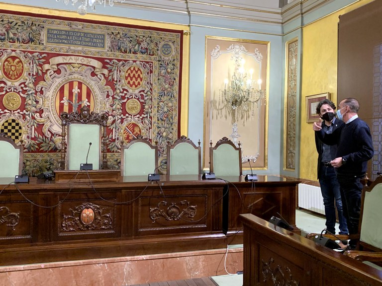 Després de la reunió de treball, l'alcalde de Flix ha pogut conèixer el Saló de Plens i el Saló del Retaule, de la mà del paer en cap.
