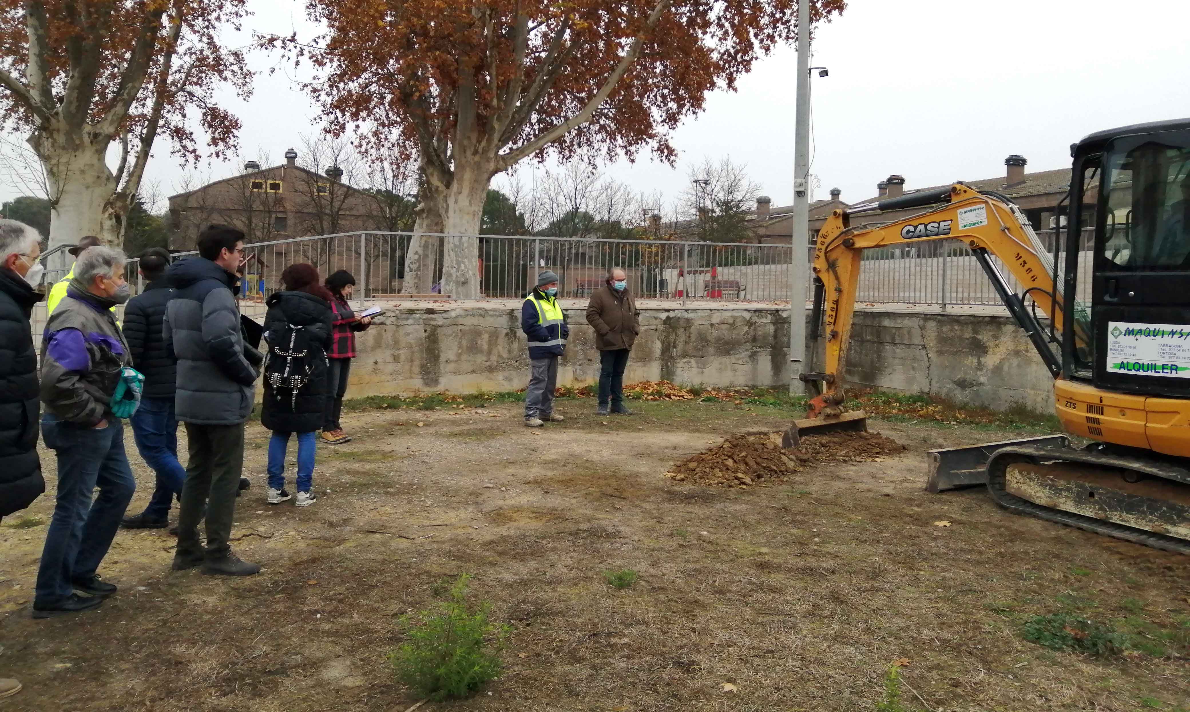 El tinent d’alcalde Toni Postius visita l’indret escollit amb representants veïnals, tècnics municipals i responsables de la constructora que executarà les obres La caseta quedarà al mateix nivell de la plaça, resol la diferència de cota, i allibera més espai en col·locar-se adossada al mur de contenció existent Els preparatius de les obres s’endegaran la setmana vinent i a principis de gener es procedirà al trasllat físic de la caseta